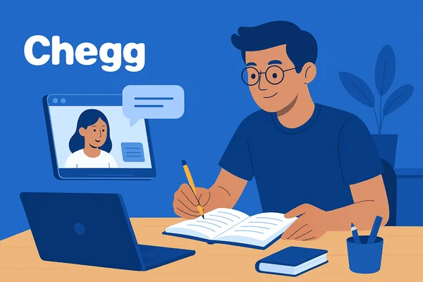 Chegg adalah platform edukasi online berbasis langganan yang bantu siswa menyelesaikan tugas, memahami materi sulit, hingga menulis esai, dengan fitur seperti Study Help, Tutor, Writing Assistant, Math Solver, dan penyewaan buku digital.