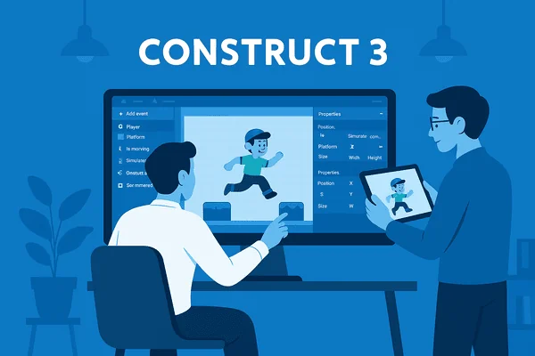 Construct 3 itu kayak alat sulap buat bikin game 2D langsung di browser. Kamu tinggal drag and drop, atur logika pakai sistem event-action, dan boom… tiba-tiba karakter bisa gerak, musuh bisa muncul, tombol bisa berfungsi, semua tanpa ketik satu baris kode pun. Ini bener-bener cocok banget buat kamu yang baru belajar atau buat yang udah pro tapi mau ngebut bikin prototipe. Dan karena basisnya HTML5, kamu nggak butuh PC spek dewa, bahkan bisa jalan di laptop kentang asal koneksi internetmu nggak ngambek.
