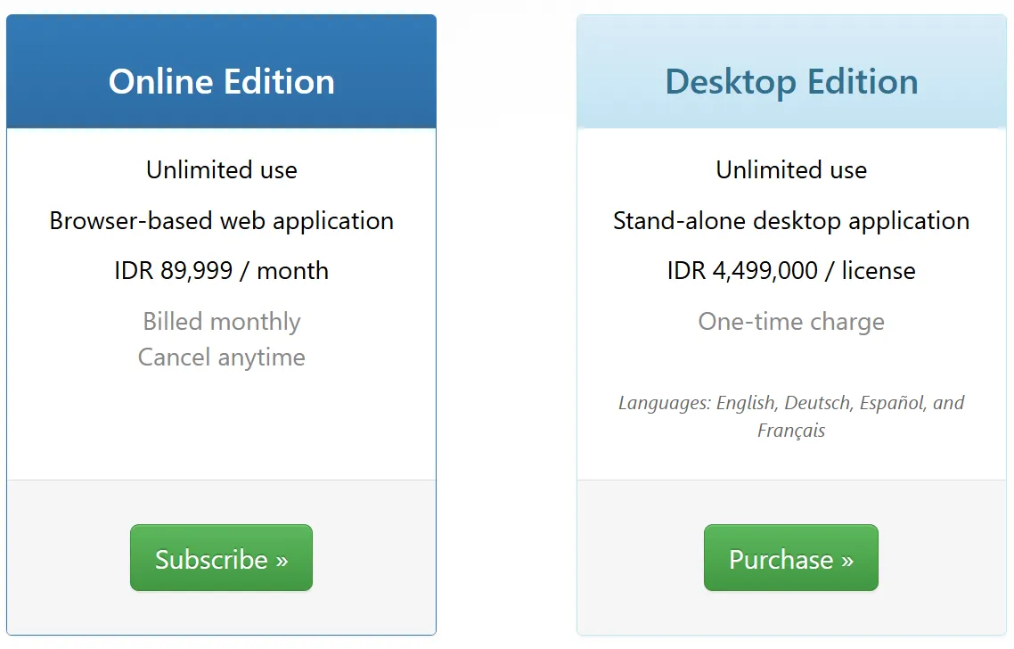 - Versi desktop sekali beli mahal, tapi ya cocok buat jangka panjang.