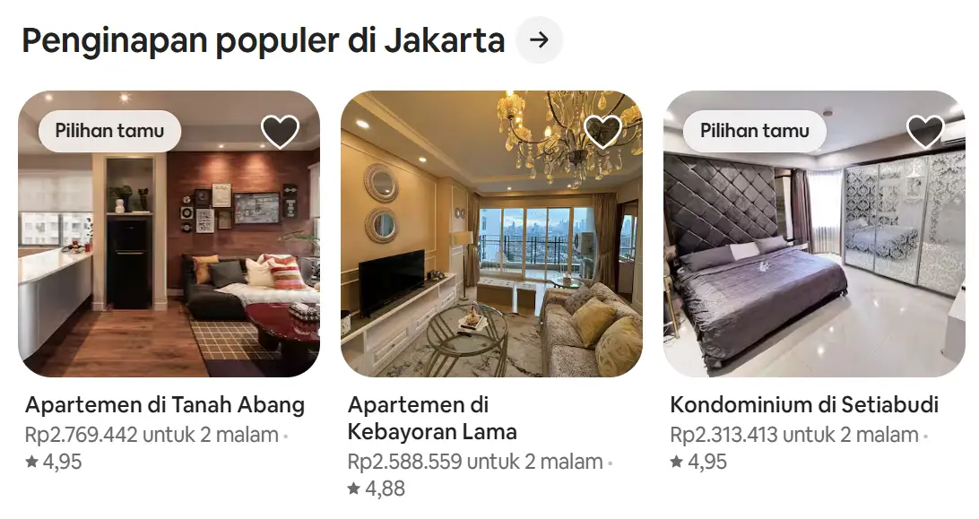 - Beberapa listing punya biaya tambahan tersembunyi kayak cleaning fee dan service fee.