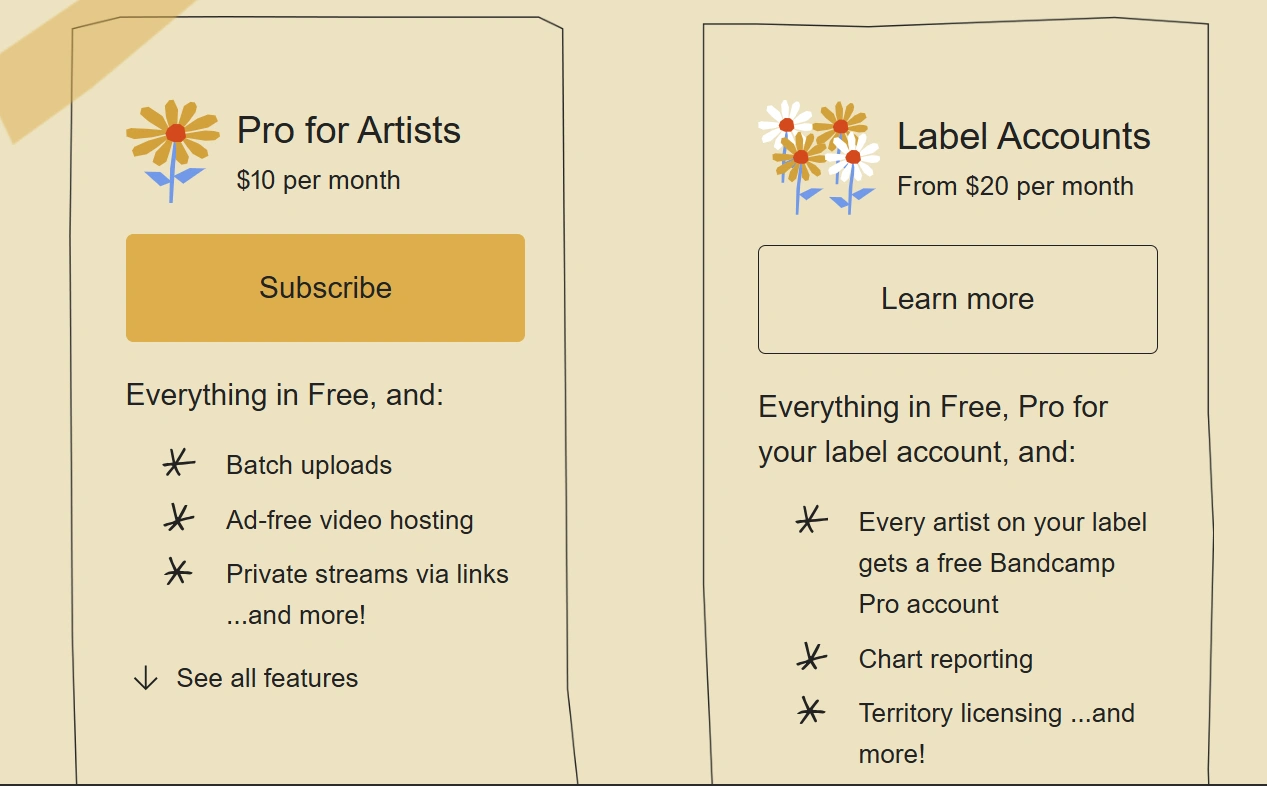 Bandcamp Pro umumnya tersedia dalam dua jenis akun utama: