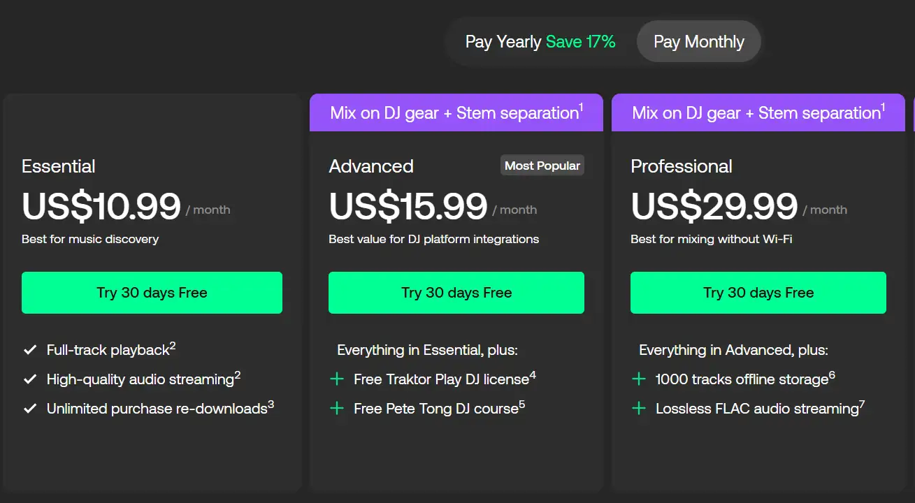 - Pilih langganan yang cocok: mulai dari Beatport Free, Essential, Advanced, sampai Professional.