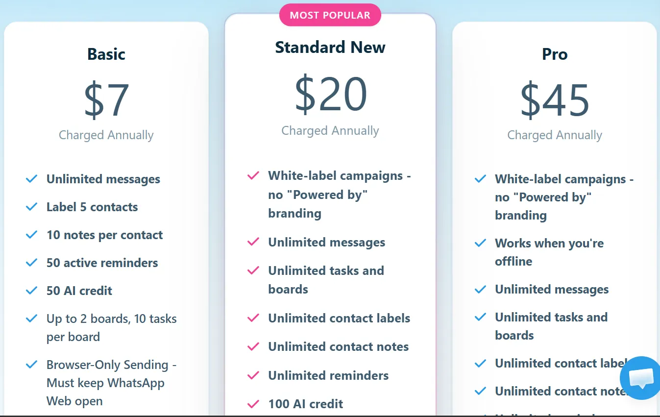 A: Versi Pro punya fitur lebih lengkap, jadwal pesan tanpa batas, personalisasi, dan kampanye yang lebih luas.