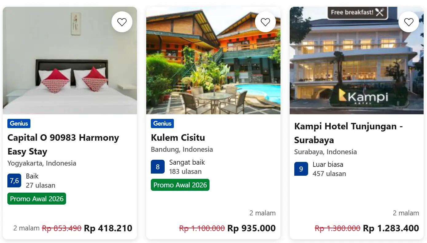 Booking.com itu ibarat swalayan raksasa buat para pejalan, kamu bisa dapetin apa aja mulai dari hotel mewah dengan kolam renang yang bikin betah, villa asri di pinggir sawah, hostel murah meriah, sampe tiket pesawat, sewa mobil, dan tiket atraksi kece. Semua bisa kamu lakuin cuma dari satu aplikasi atau website tanpa harus buka banyak tab yang bikin pusing tujuh keliling. Fungsinya sebagai jembatan antara kamu dan penyedia layanan traveling, cocok banget buat siapapun, baik yang pertama kali ngetrip sendiri, pasangan yang lagi honeymoon, keluarga besar yang mau liburan rame-rame, bahkan buat digital nomad yang kerja sambil jalan-jalan. Plus kalau kamu suka hunting promo, wah ini surganya diskon.