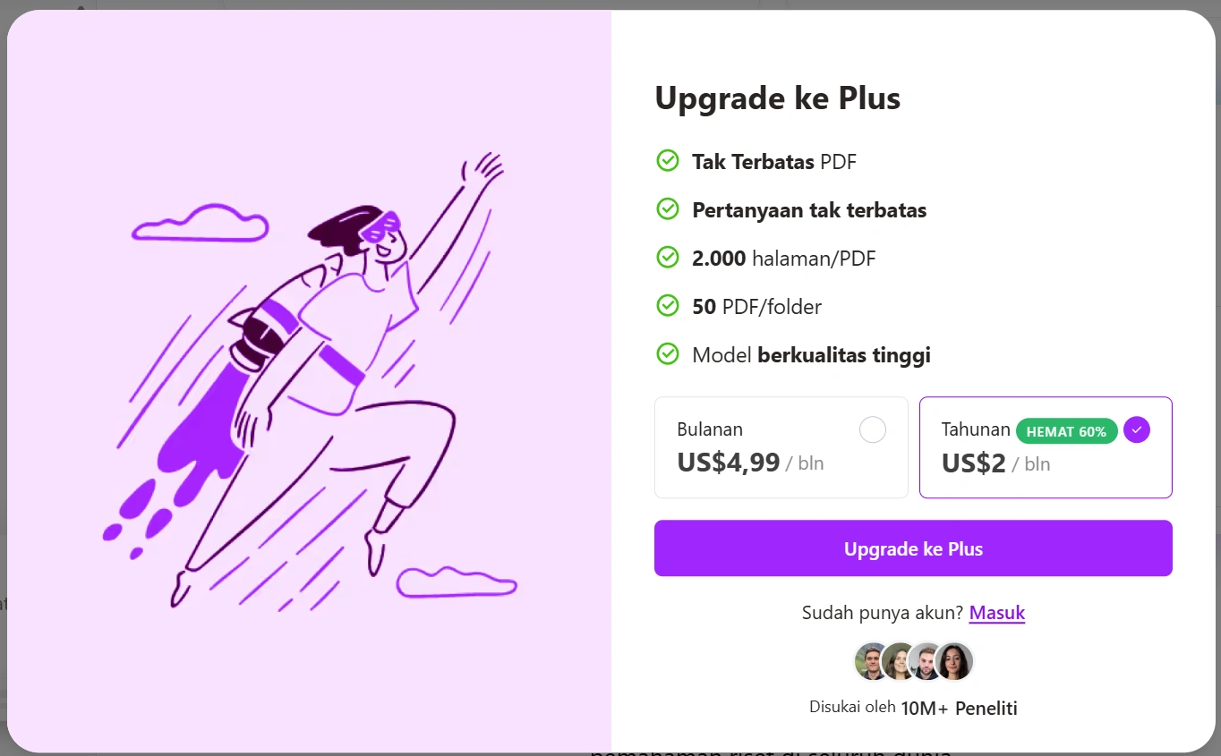 Harga mulai $5 per bulan, dapat fitur lebih banyak, ringkasan, terjemahan, dan jumlah dokumen lebih besar.