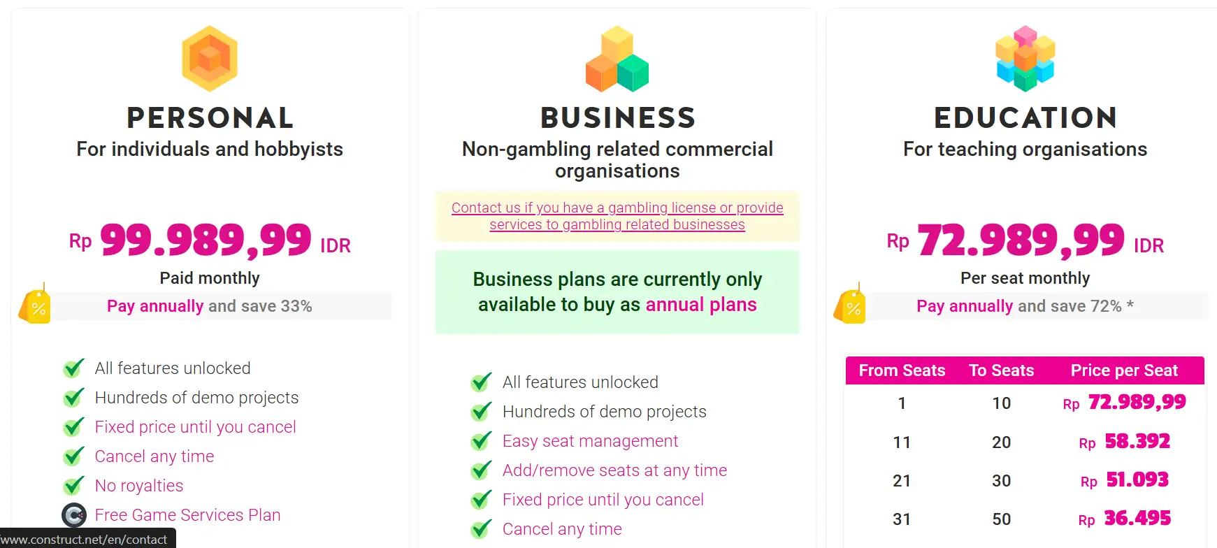 - Chat admin, bilang mau langganan Construct 3 dan sebutin paketnya.