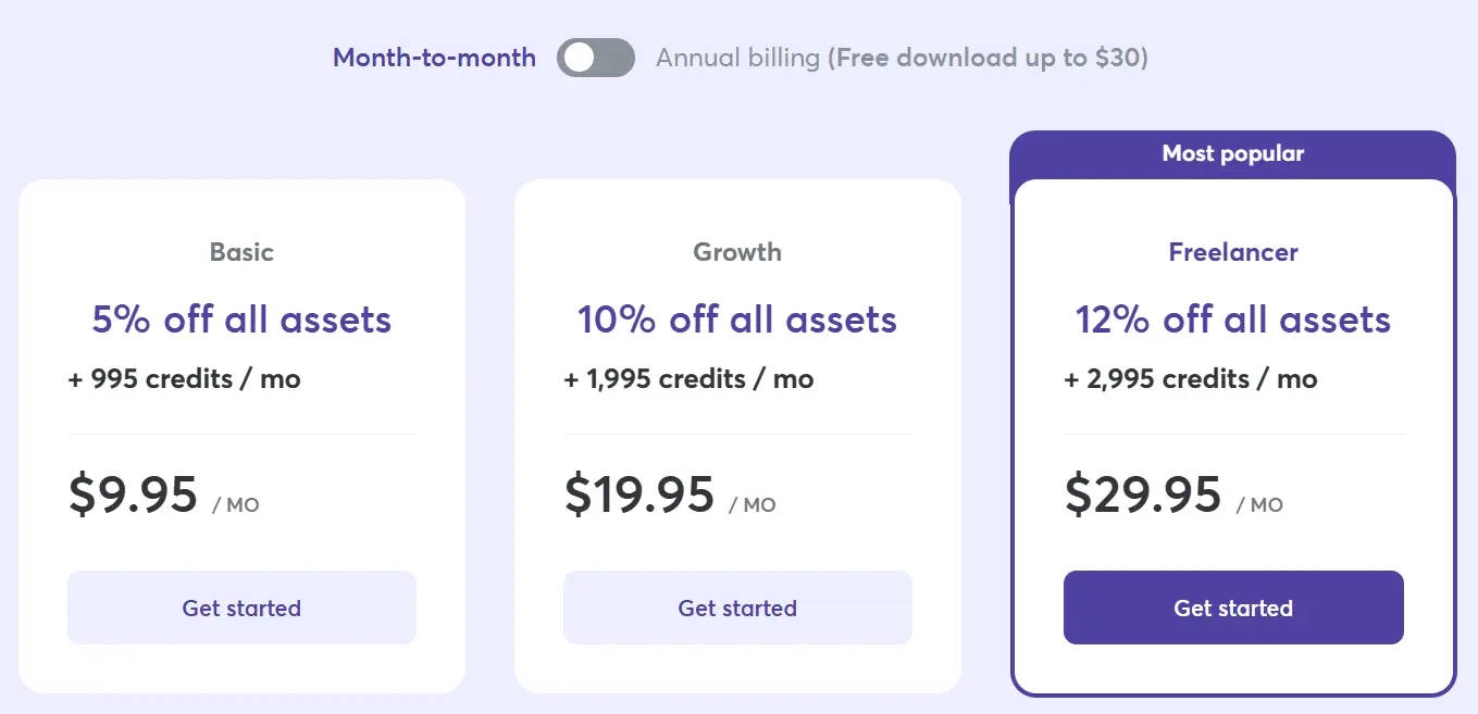 Kalau kamu langganan membership, dapet jatah kredit yang bisa kamu pakai buat beli aset tanpa keluar duit tambahan tiap saat.