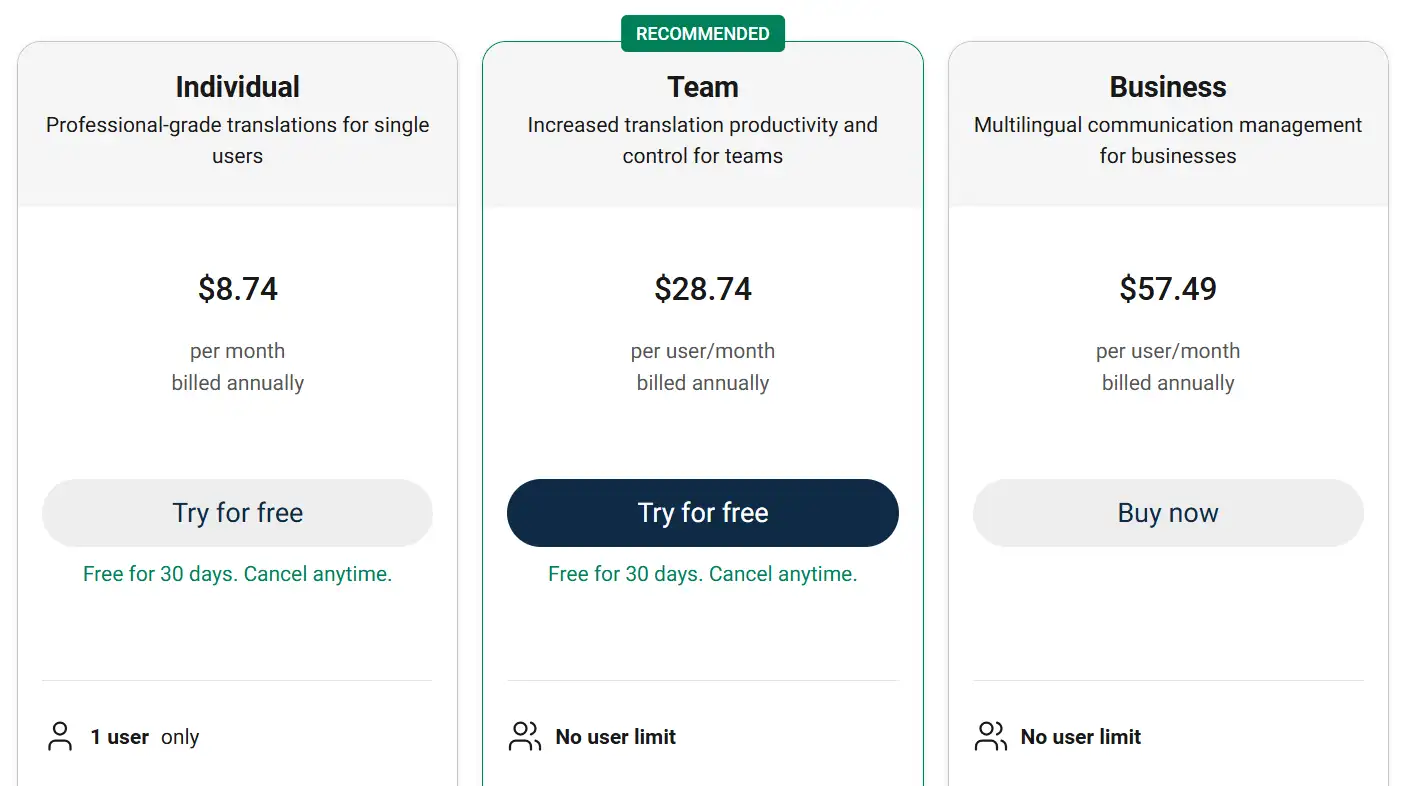 2. Deepl Pro Advanced ($29.99/bulan tahunan atau $44.99/bulan)