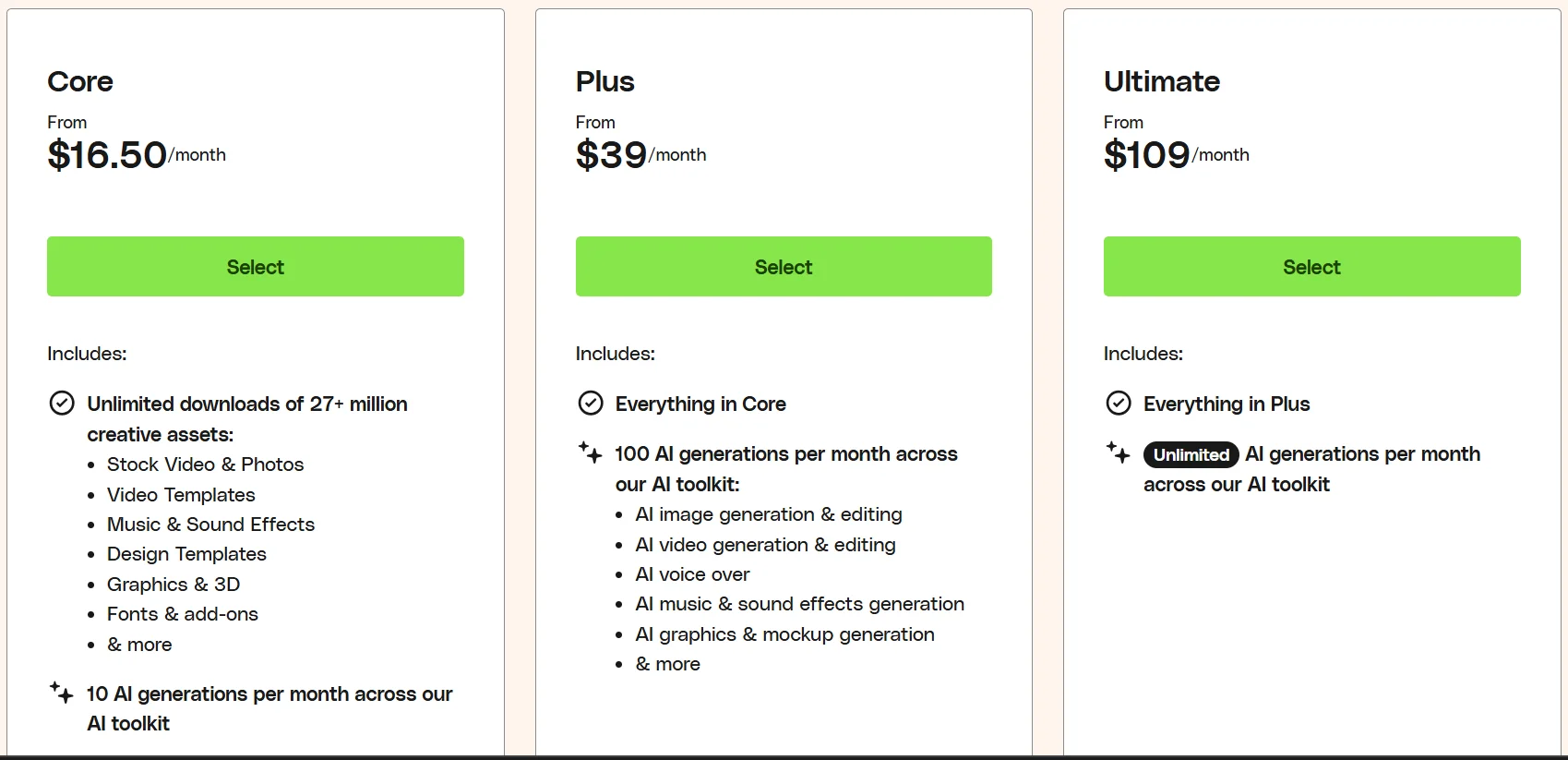 - Footage video dan audio bebas royalti yang langsung siap pakai