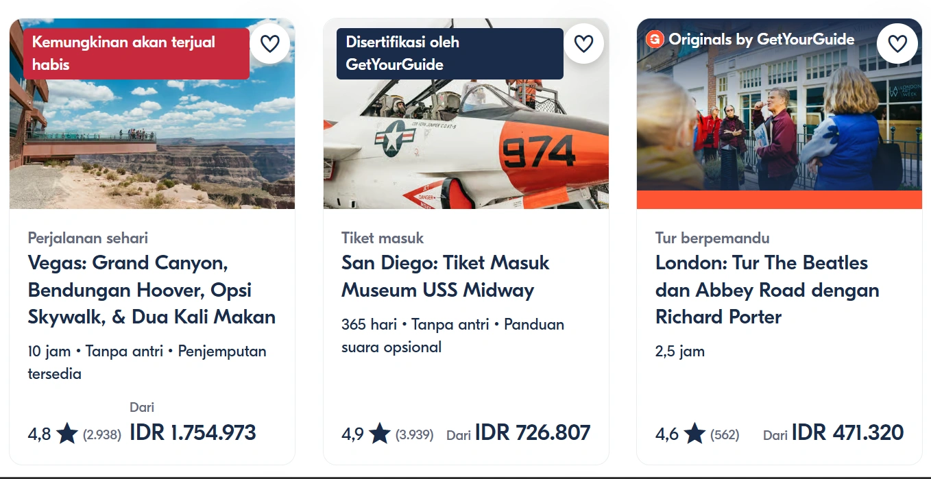 Padahal platform ini menyediakan ribuan pilihan aktivitas wisata dunia, mulai dari tiket theme park, museum, tur kapal, city tour, sampai pengalaman unik seperti desert safari atau northern lights tour.