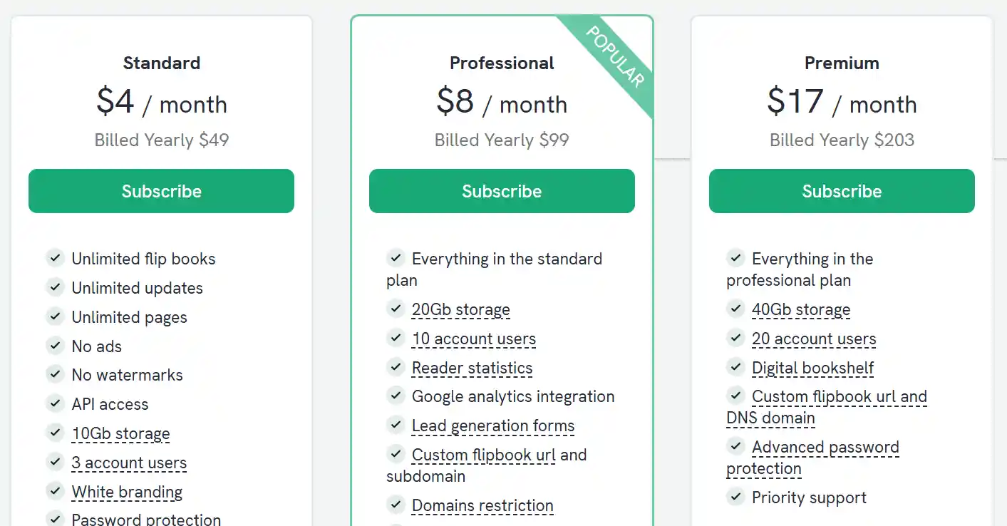 Beberapa fitur utama yang bisa kamu pakai di paket ini antara lain publikasi flipbook tanpa watermark, kapasitas penyimpanan yang lebih besar dibanding versi gratis, serta opsi download flipbook agar bisa dibagikan atau disimpan secara offline.