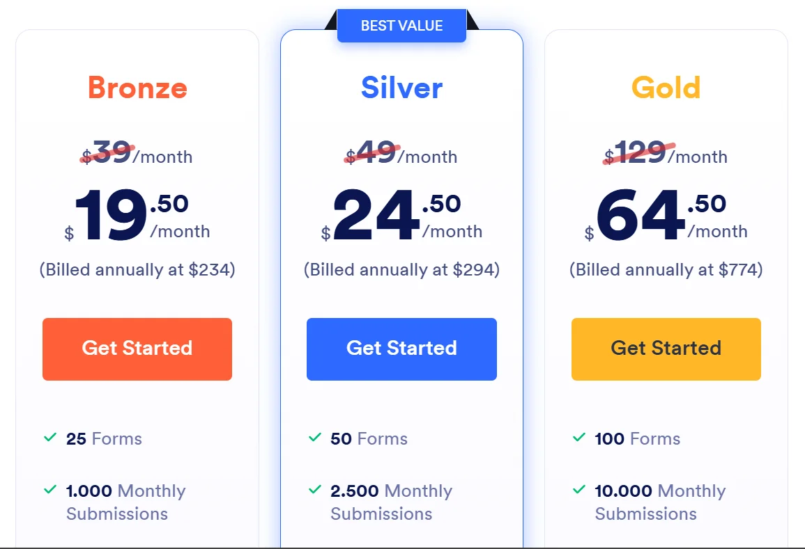 - Fitur gratis terbatas dan ada watermark Jotform di form.