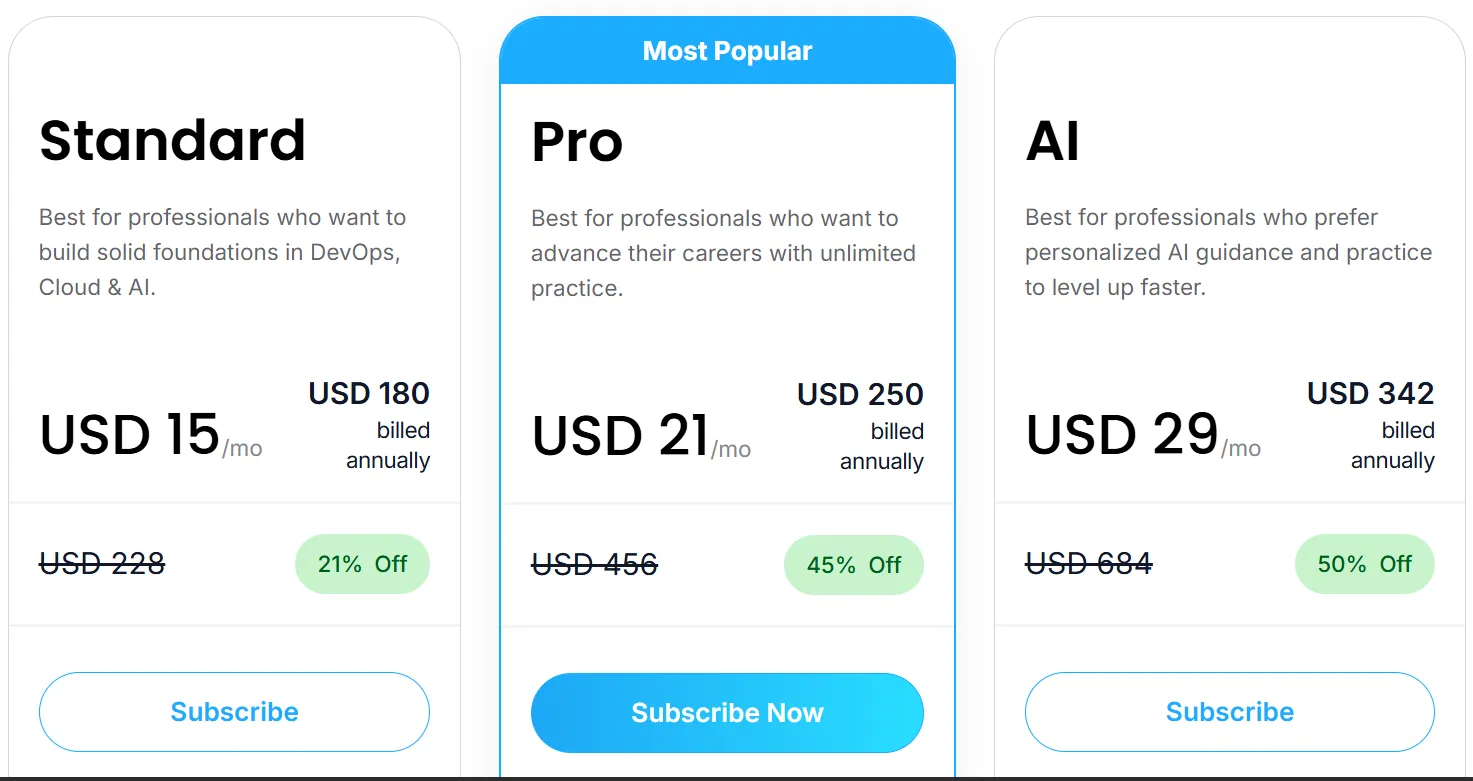 Paket ini cocok untuk pengguna yang baru mencoba layanan KodeKloud atau hanya ingin belajar dalam jangka pendek tanpa komitmen panjang.