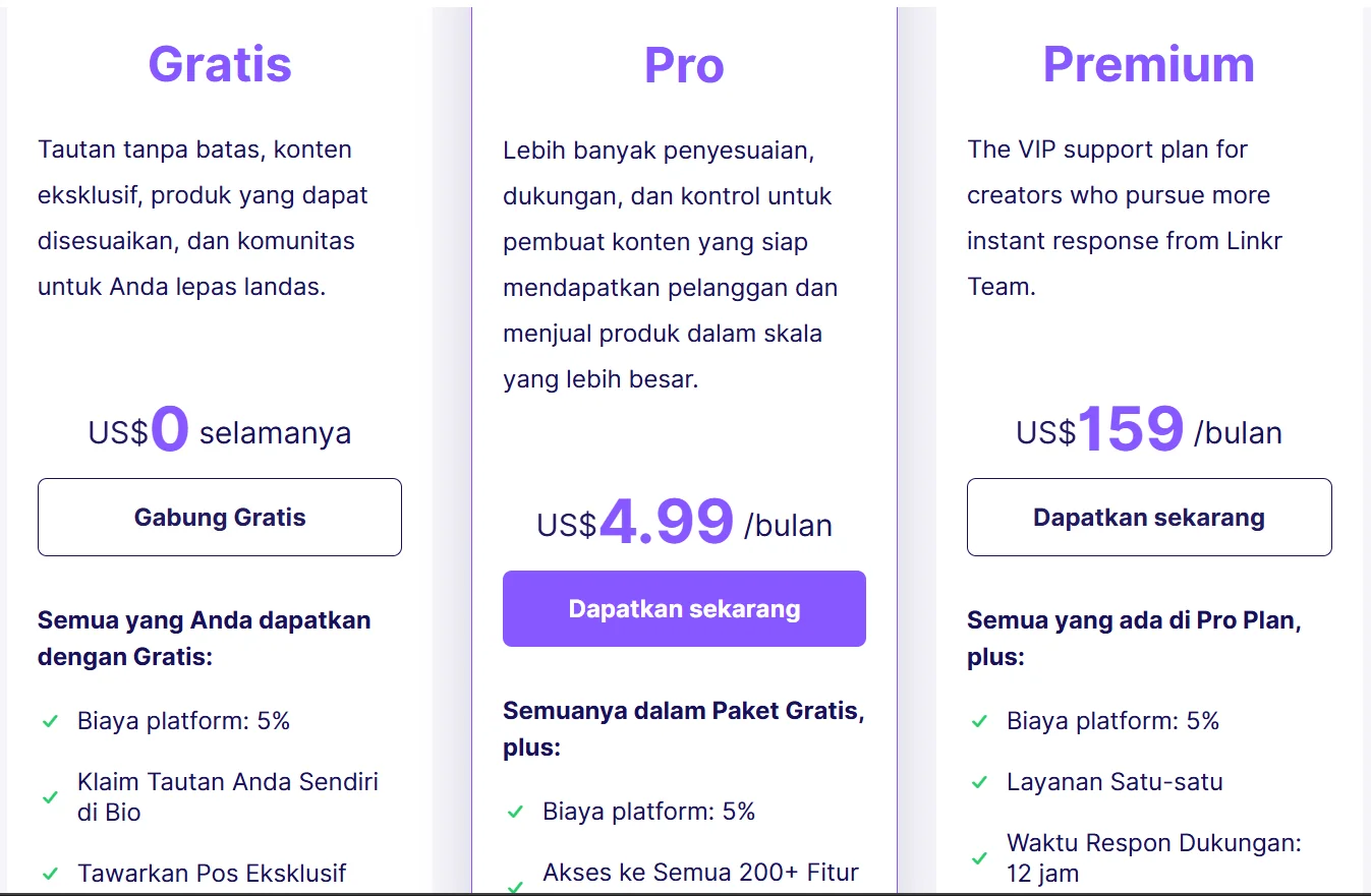 Paket dan Harga Langganan Linkr