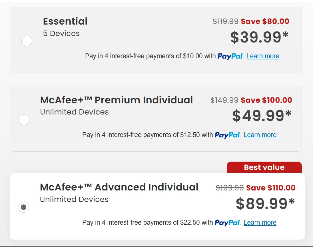 - Masuk ke website resmi McAfee, pilih paket, dan bayar pakai data VCC tadi