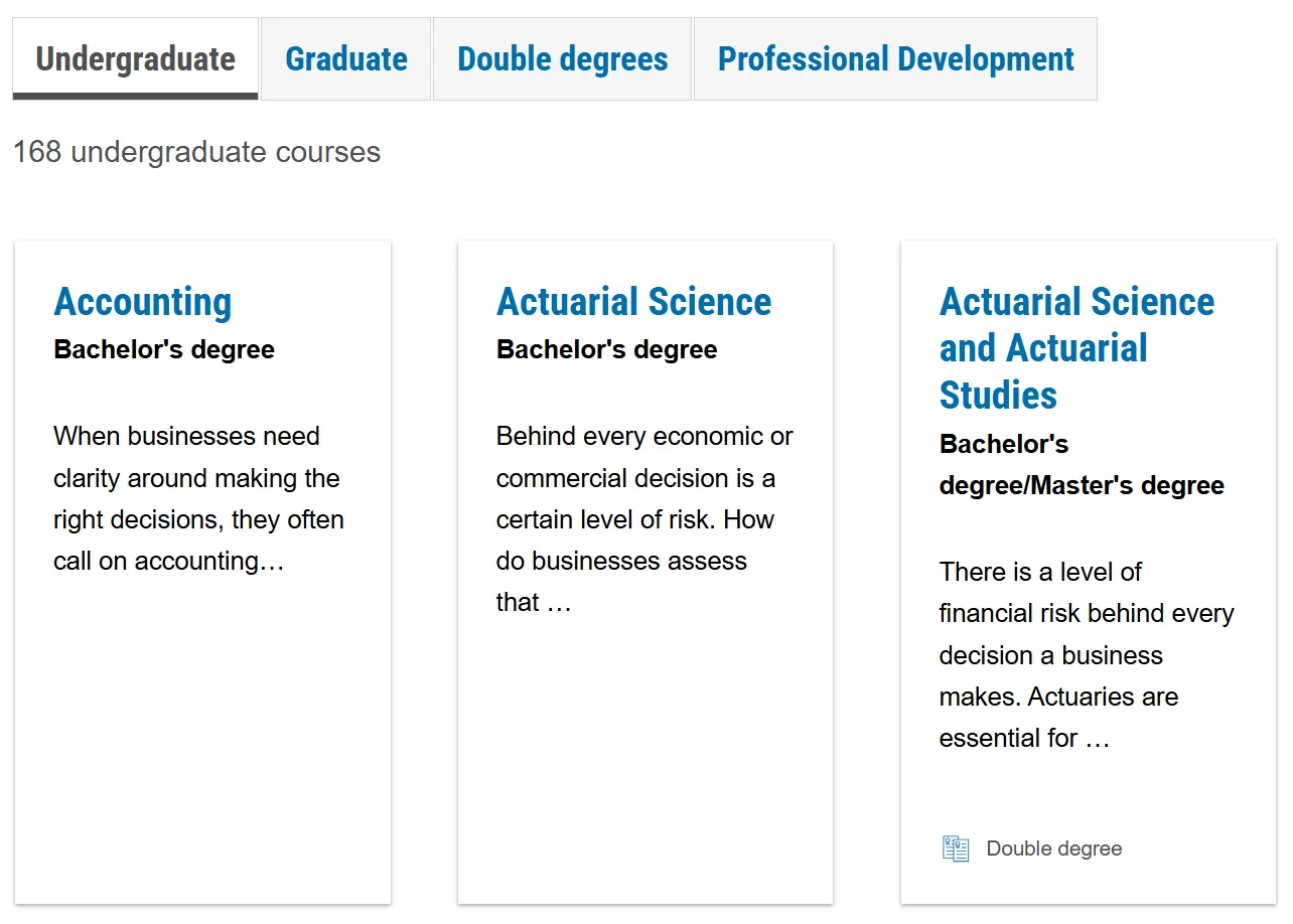 Monash menawarkan lebih dari 200 program studi di berbagai bidang seperti hukum, kesehatan, teknologi, humaniora, bisnis, dan sains, yang memberikan keleluasaan bagi mahasiswa memilih jalur yang sesuai.
