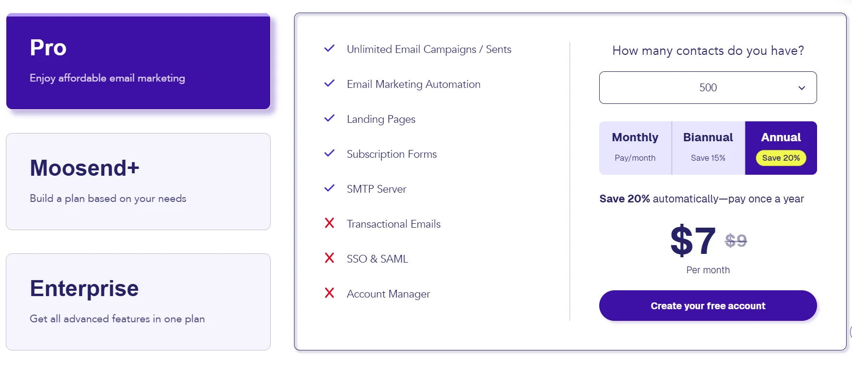 - Kartu kredit internasional seperti Visa, MasterCard, dan American Express bisa digunakan untuk berlangganan Moosend.