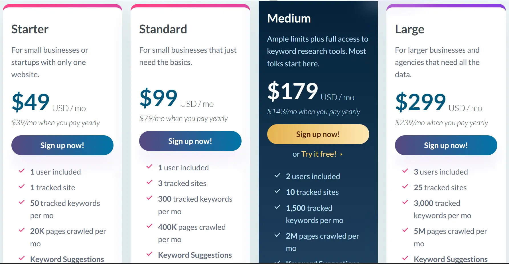 2. Paket Moz Pro – Medium ($179/bulan)