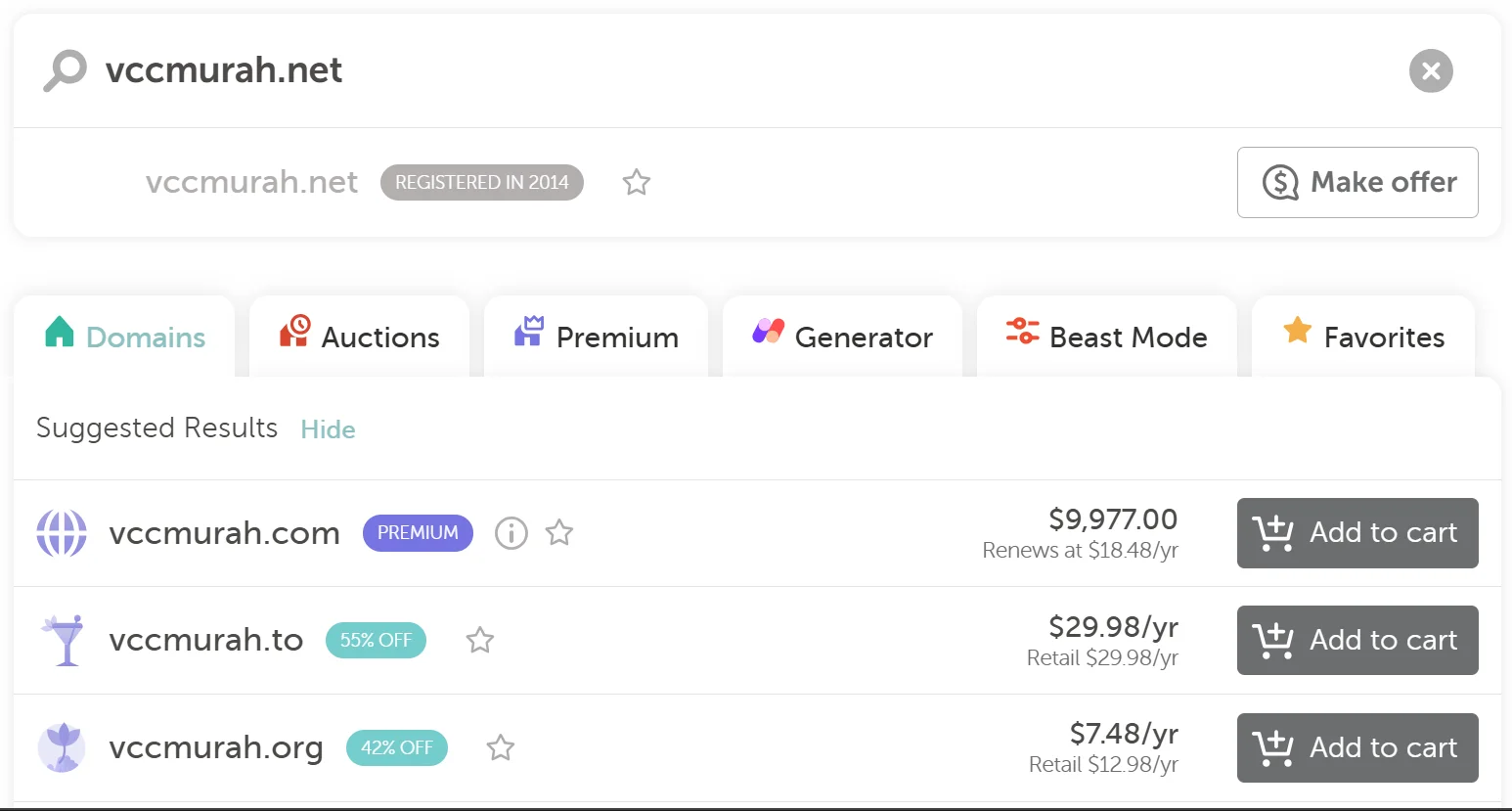 Kalau kamu cuma butuh alamat online aja, kamu bisa beli domain dengan harga mulai dari $1–$15 tergantung ekstensinya.
