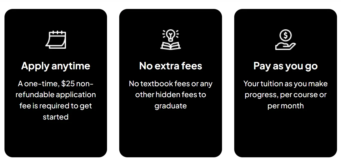 Sistem flat fee per bulan bikin kamu nggak perlu pusing ngitung SKS, karena satu harga bisa buat ngambil beberapa modul sekaligus, cocok buat kamu yang pengen lulus cepet tapi budget terbatas.