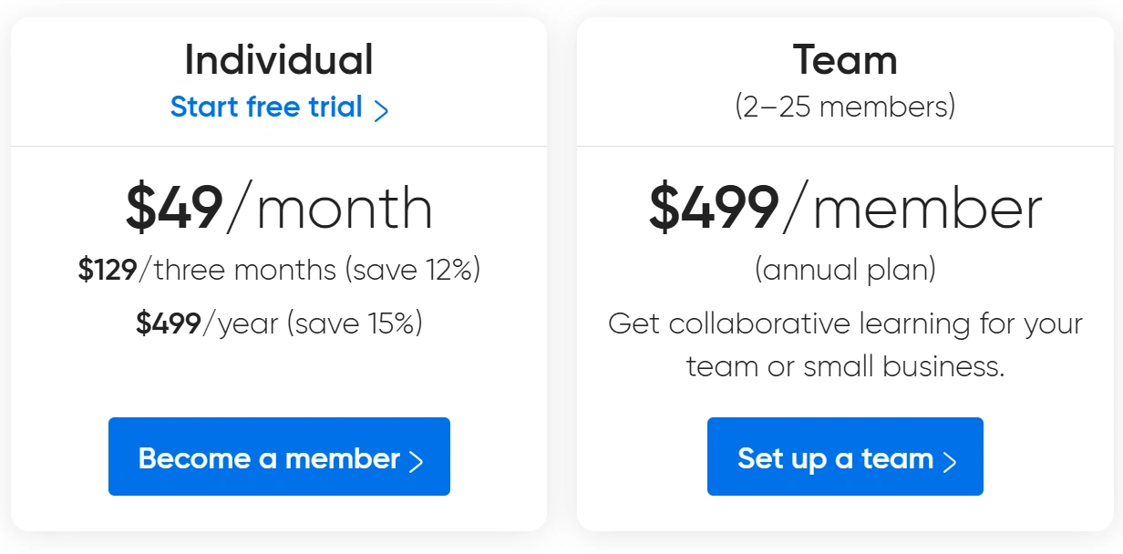 Paket ini dibuat khusus untuk organisasi kecil hingga menengah yang ingin memberikan akses belajar kepada seluruh anggota tim.