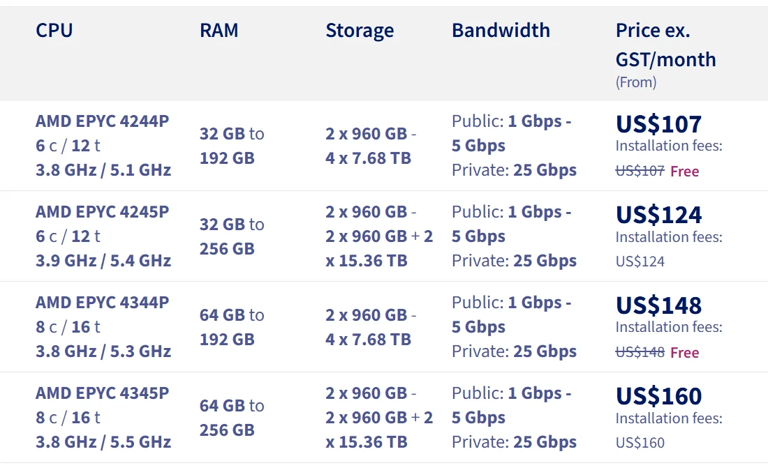 Server fisik untuk kebutuhan enterprise mulai $100 USD per bulan.