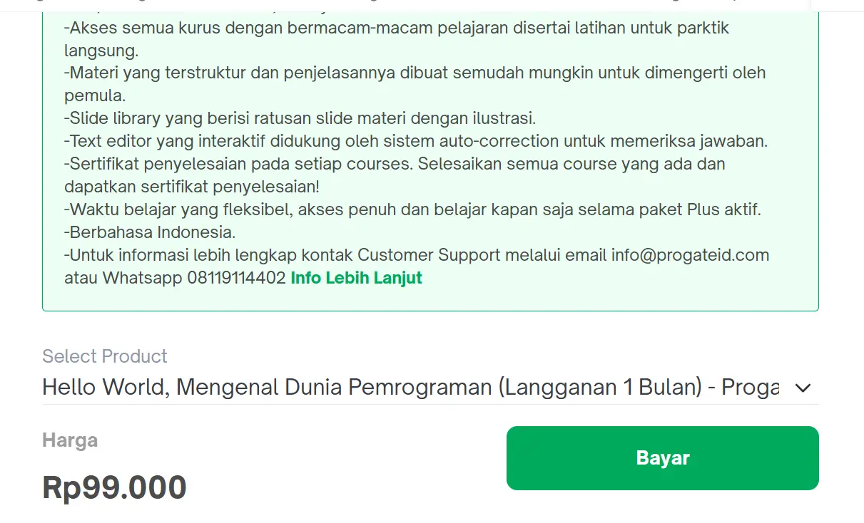 - Screenshot halaman checkout dari Progate dan kirim ke admin via WhatsApp.