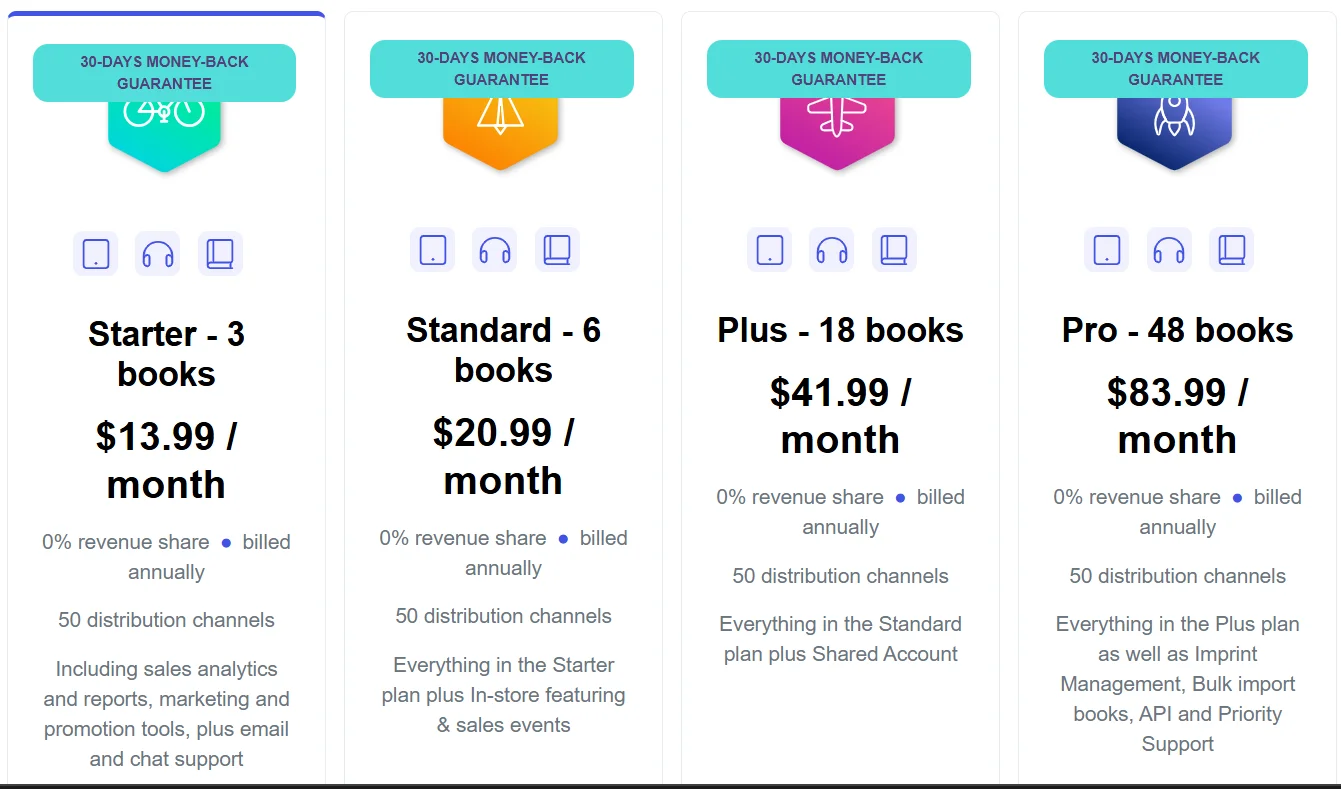 - Kamu bisa jual eBook, audiobook, dan cetak dalam satu platform.