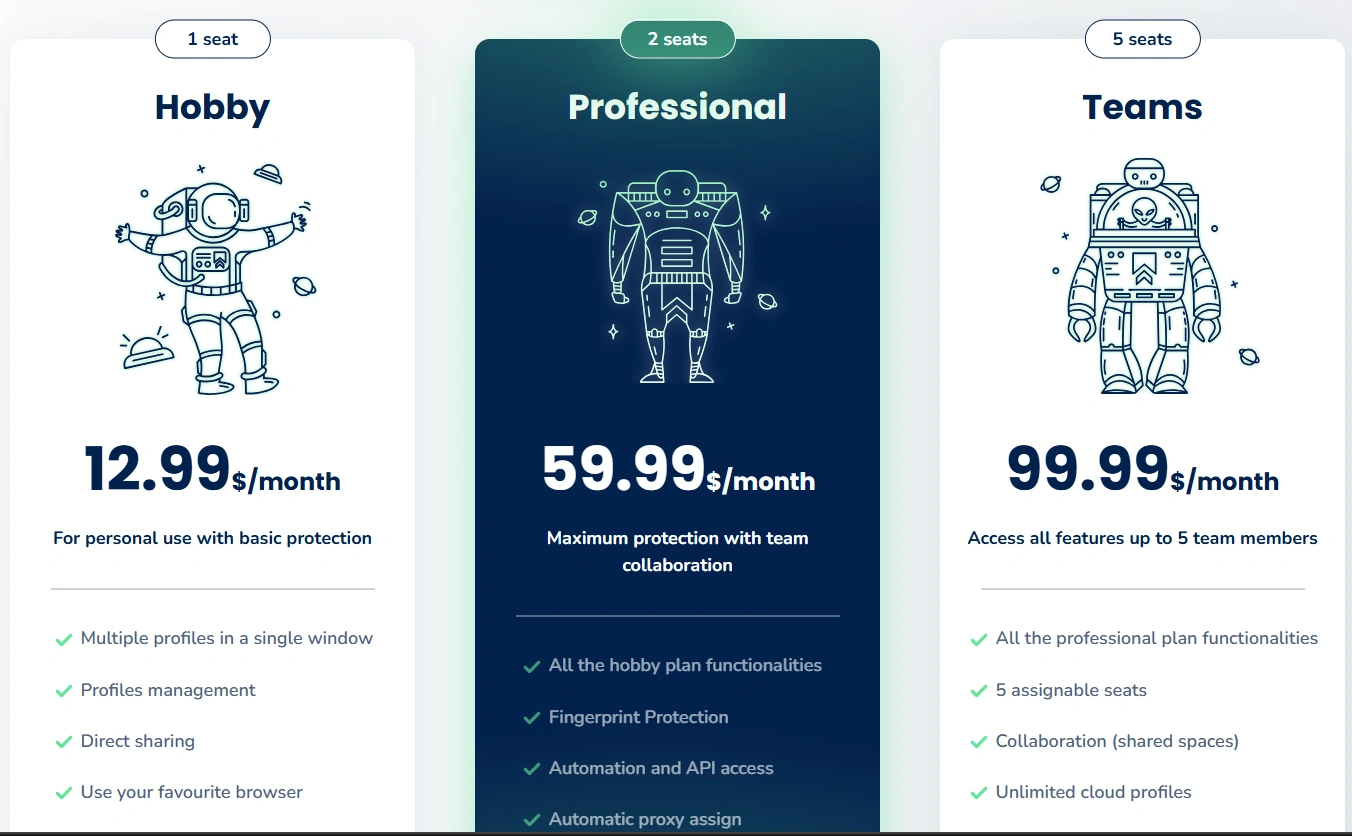 - Multilogin menawarkan pengelolaan browser profile terpisah untuk bisnis skala besar.