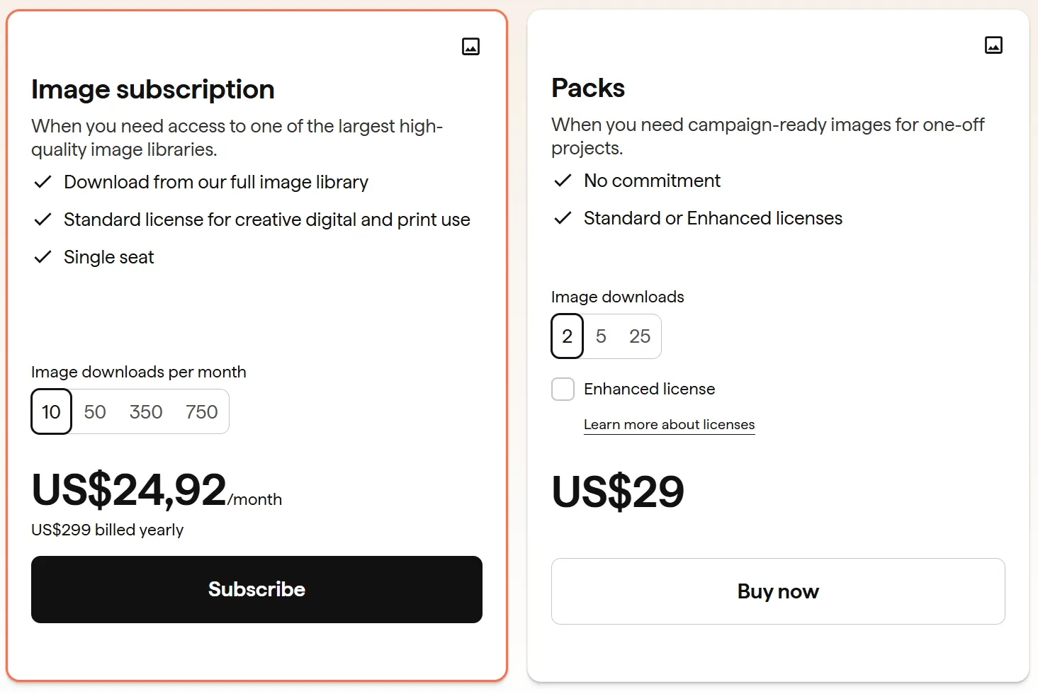 - Setelah itu, kamu pilih apakah mau beli satuan atau mau langganan bulanan dengan lisensi standar atau enhanced, tergantung kebutuhan kamu buat pakai kontennya nanti.