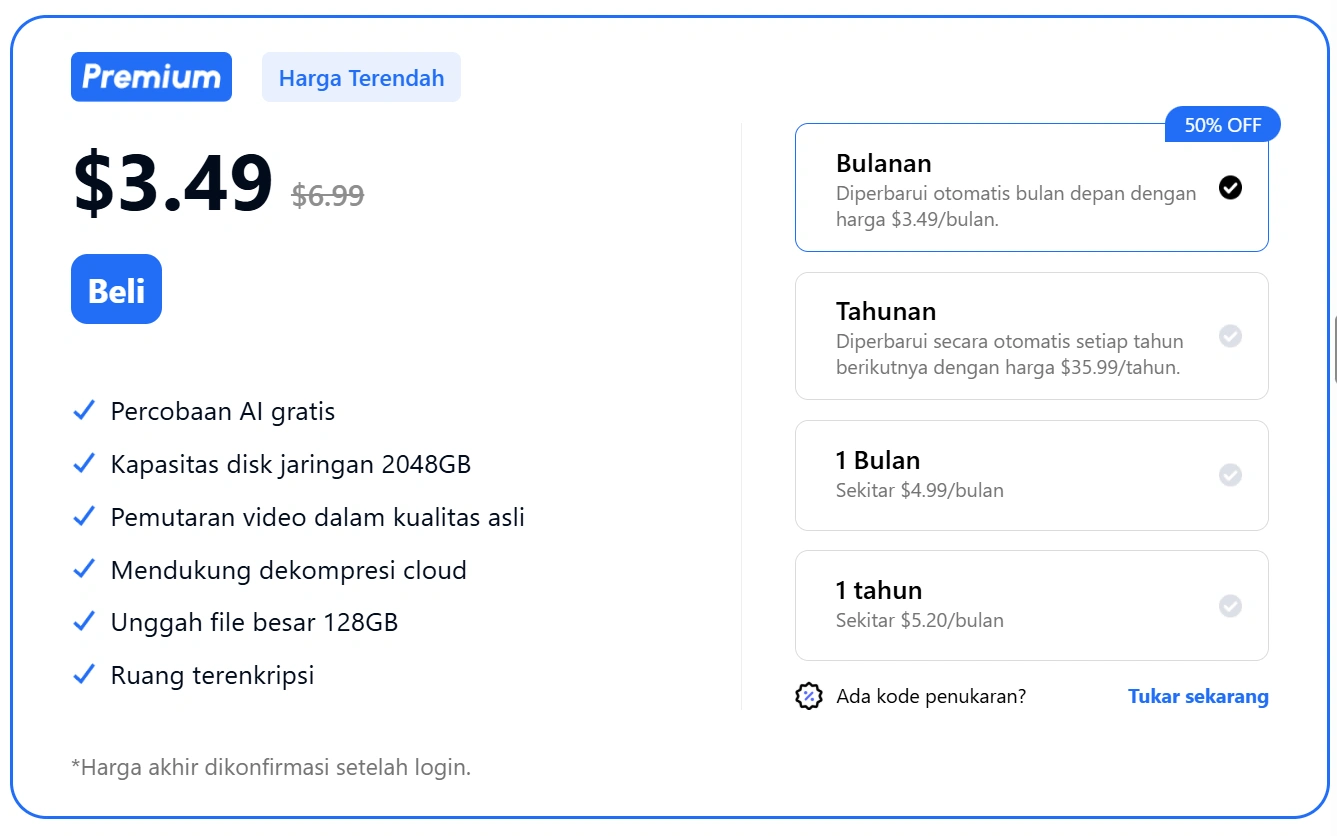 A: Selain kapasitas, paket 4TB dapet prioritas layanan dan fitur pencarian lebih canggih.