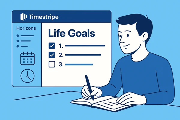 - Kamu atur “Horizons” alias kerangka waktu: harian, mingguan, bulanan, tahunan, bahkan seumur hidup.
