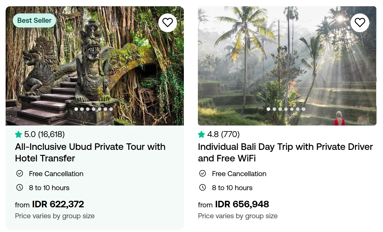 Kamu bisa nyari aktivitas berdasarkan kategori, durasi, harga, ulasan, dan bahkan kecocokan (misalnya ramah difabel atau cocok buat anak-anak):