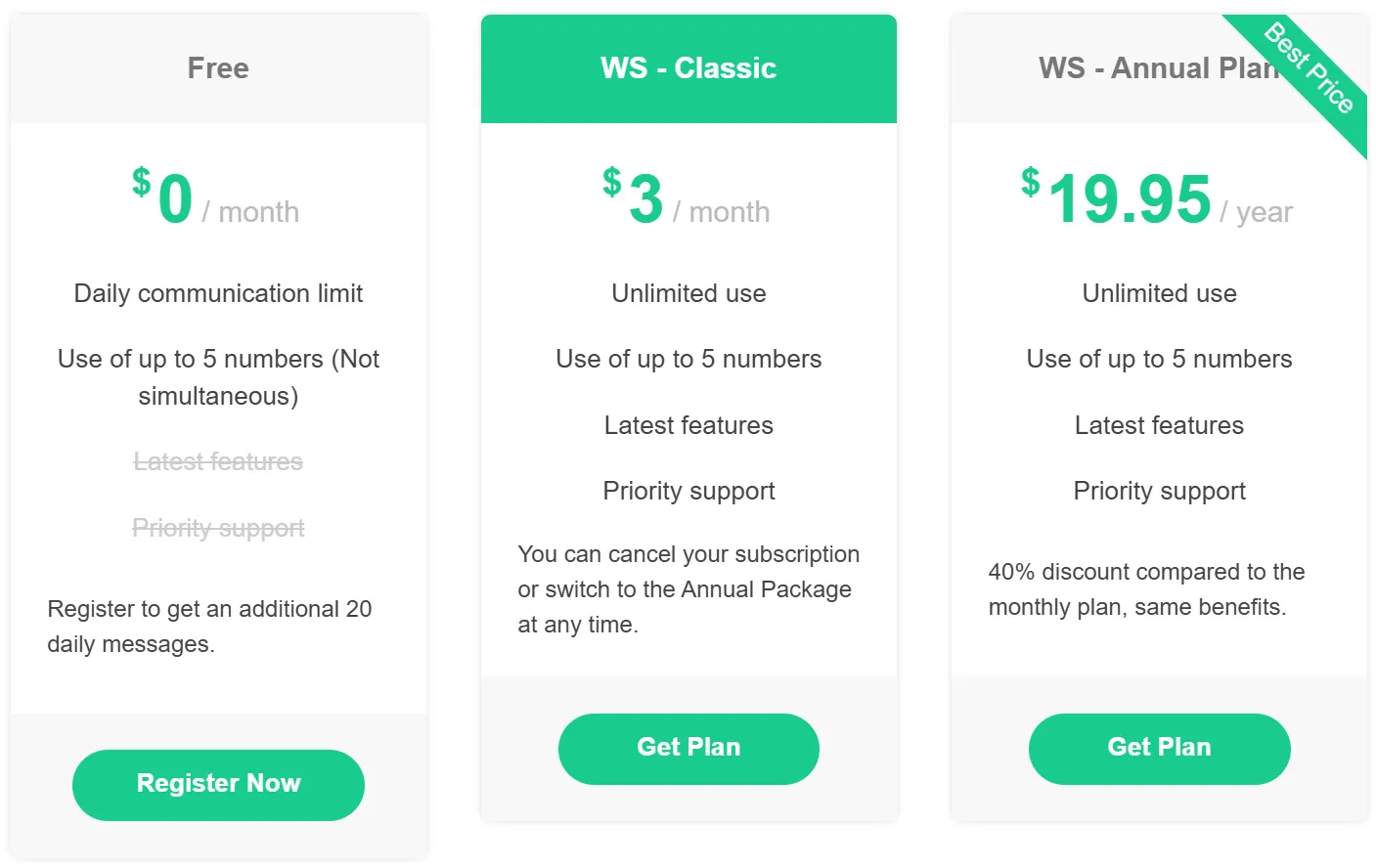 Paket WhatSender Classic dirancang untuk kamu yang baru mulai belajar WhatsApp marketing dan belum membutuhkan fitur tingkat lanjut. Meskipun termasuk versi basic, paket ini sudah cukup mumpuni untuk keperluan promosi dasar dan komunikasi rutin dengan pelanggan.