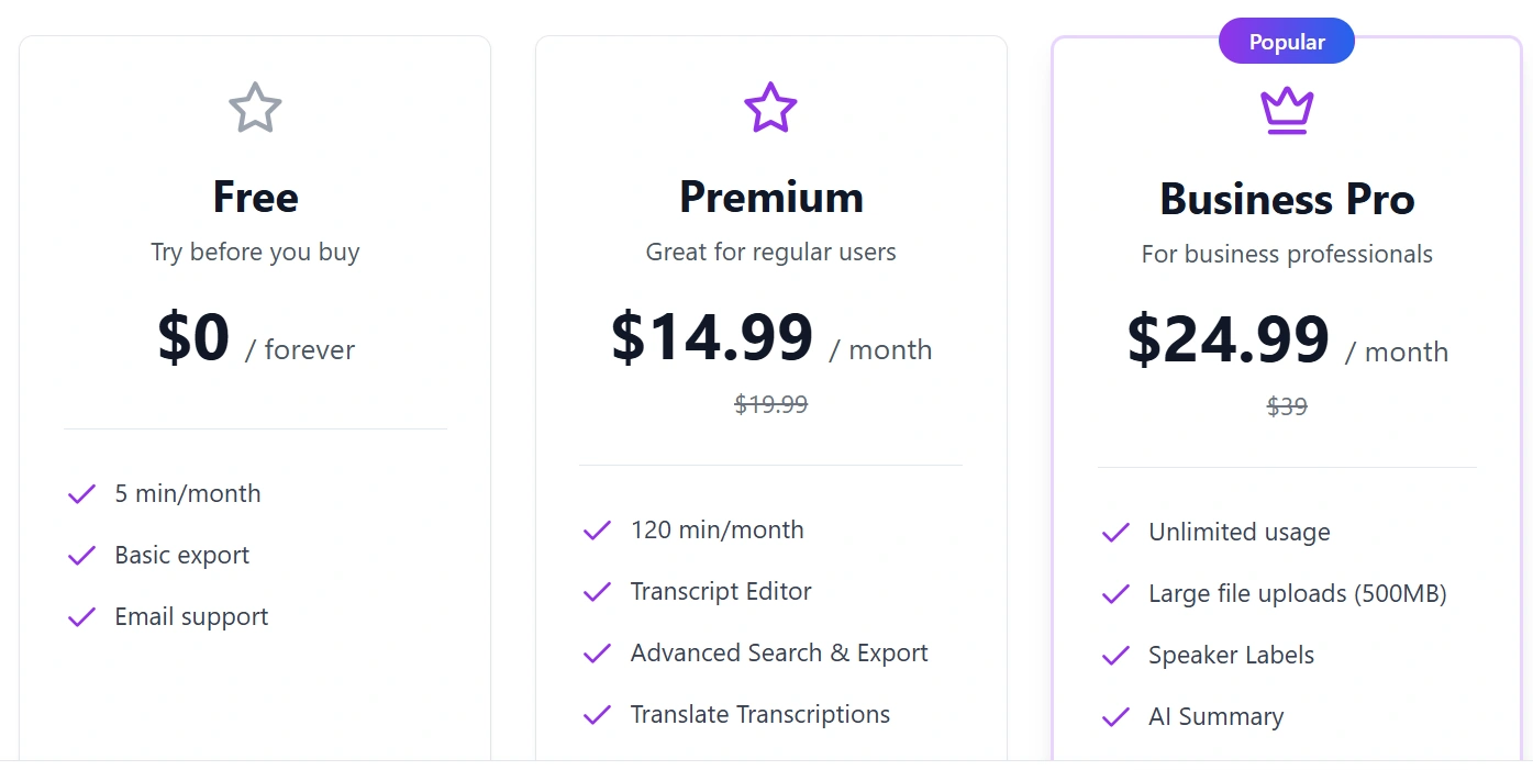 Biasanya kuota transkripsinya jauh lebih besar dan lebih nyaman dipakai untuk tim. Beberapa klien yang punya workload tinggi langsung ambil paket ini supaya tidak khawatir limit habis di tengah deadline.