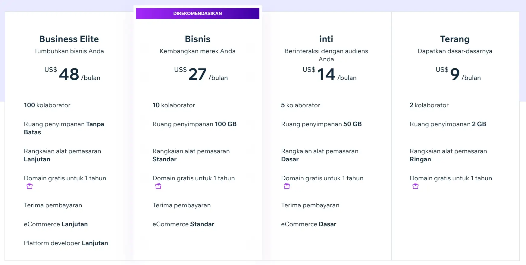 - Wix Light Plan ($17): (17 × 17.500) + 30.000 = Rp297.500 + Rp30.000 = Rp327.500