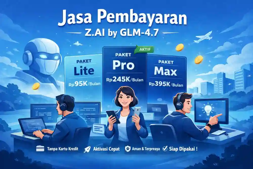 Kalau kamu ingin memakai Z.AI dengan model GLM-4.7 tanpa ribet urusan pembayaran luar negeri, kami siap membantu sampai akun aktif dan siap digunakan.